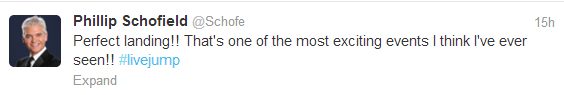 On Twitter over half the worldwide trending topics were related to Felix’s jump and celebrities worldwide were tweeting about the event: