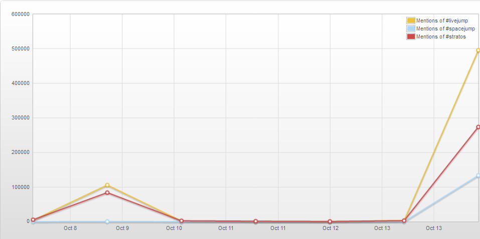 The Official Twitter account for Red Bull Stratos gained 103,129 followers and below you can see the 3 main hashtags used throughout the event on Twitter: