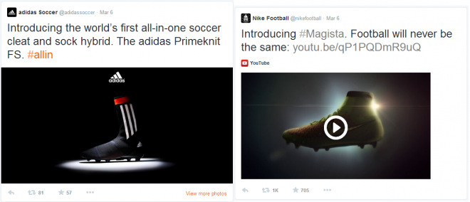 Taking this example alone, it’s pretty clear who is winning. The Swoosh brand received over 1,000 RTs alone on the boot reveal compared to just 81 for the German brand, whilst that video - the one that makes you wish you were a kid pretending to be Ronaldo again – has quickly become the brand’s most viewed online ad and YouTube clip.