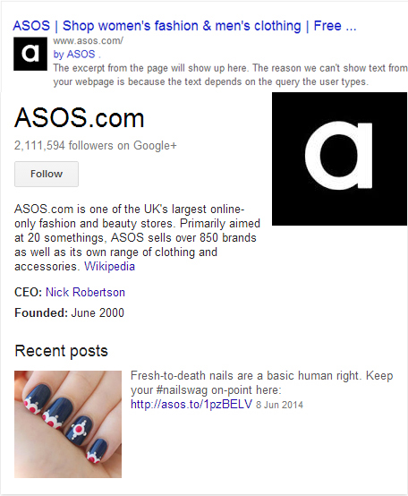 ASOS started using Google+ in 2012 and has seen its following grow rapidly.