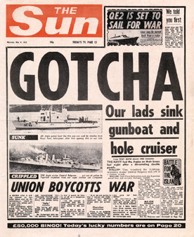 Headlines are important. It’s got to be eye catching but relevant. Take The Sun’s infamous ‘Gotcha’ headline as an example; during the Falklands War the British Navy controversially sunk the General Belgrano, an Argentinean cruiser, cue an arguably inappropriate headline from a boundary pushing publication. Now this is a typical headline from The Sun, like ‘Freddie Starr Ate My Hamster’ or ‘Up Yours Delores’, they’re blunt and usually a crude play on words, but would it work for a purely online audience? Probably not.