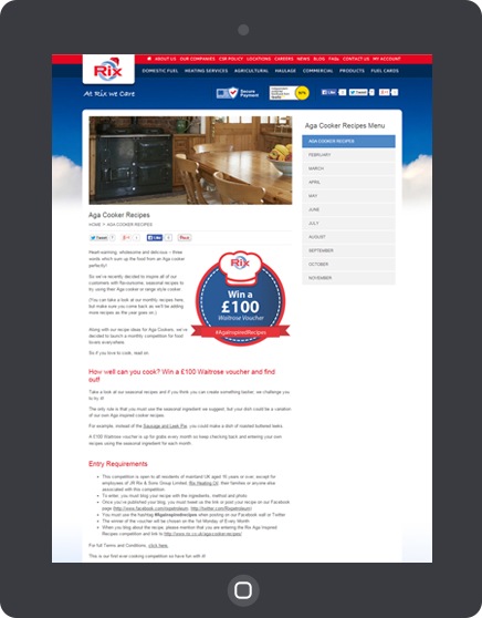 To neatly tie in the industry of heating oil and online recipes, Blueclaw launched the #AgaInspiredRecipes campaign. This challenged bloggers to create recipes inspired by a seasonal ingredient decided by Rix each month.
